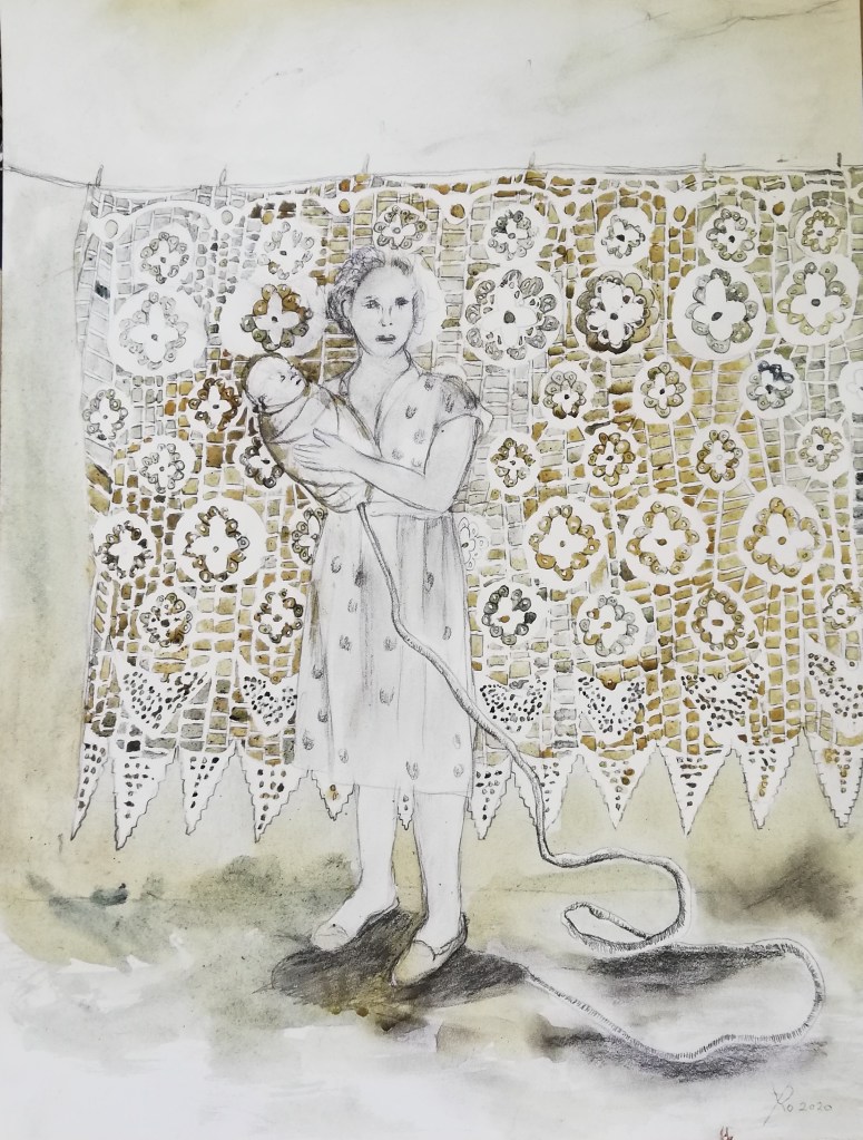 - TB10, watercolor and indigo drawing, Lokta 40×55 cm, 2021